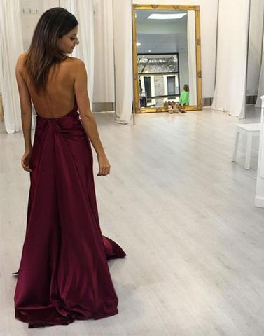 2018 Simple v neck burgundy long prom dress, burgundy evening dress