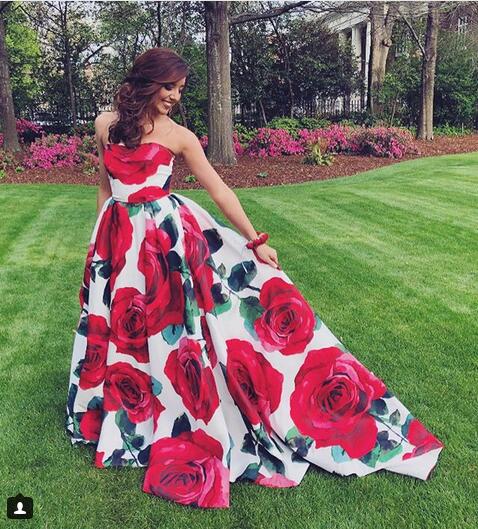 Floral Print Prom Dress, Ball Gown Prom Dress, Long Evening Dress Prom Dresses Formal Dress Prom Gown