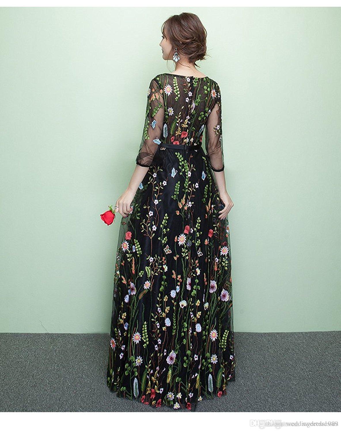 2018 Black floral gown, floral maxi dress, black wedding dress, prom dress, embroidered dress, prom dress, black tie gown