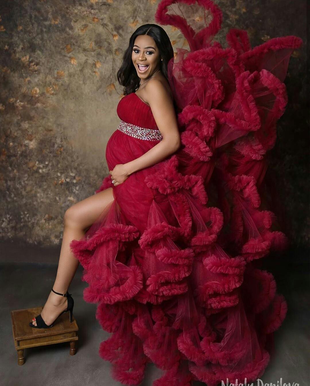 New Maternity Dress For Photo Pregnant Women Sexy Strapless Tiered Ruffles Nigh Robes Mermaid Gown Pregnancy Dress Baby Shower Prom Wear
