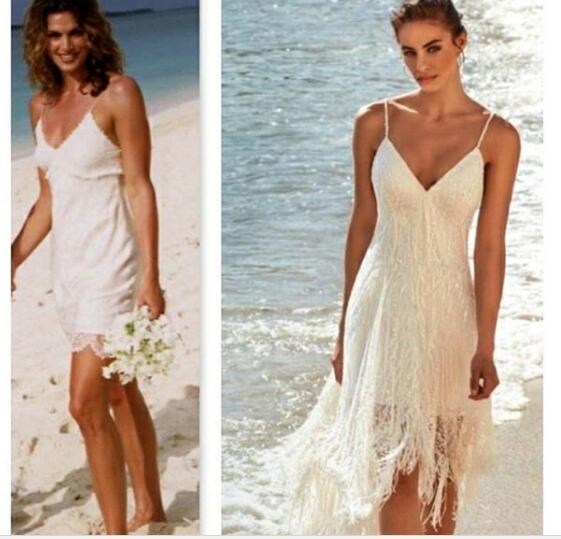 Sexy Short Beach Wedding Dress, Spaghetti Straps Wedding Dress