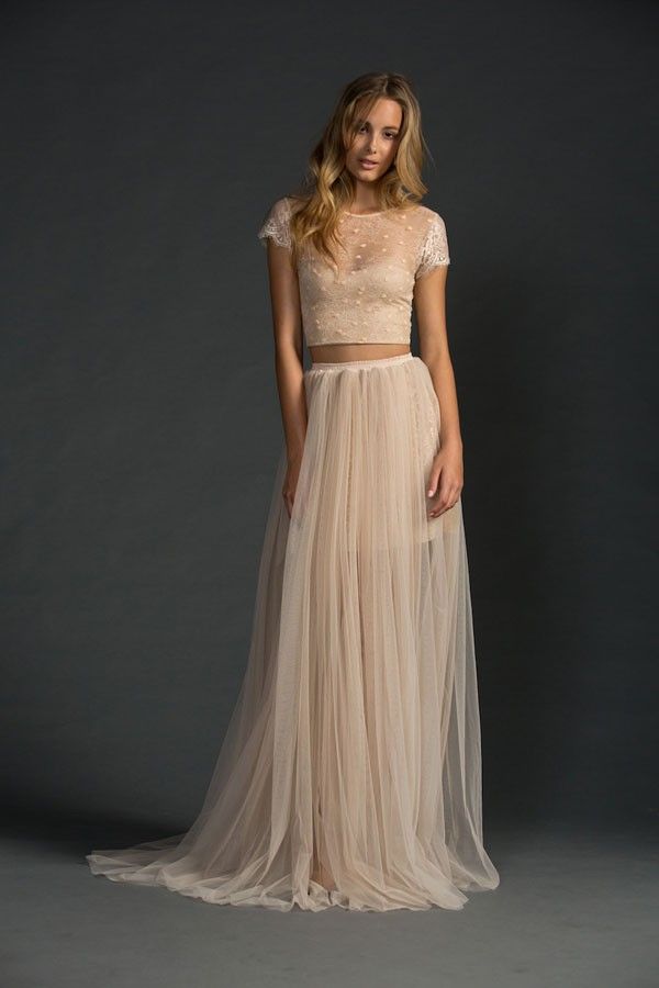 Sexy Two Pieces Wedding Dress, A-line Blush Beach Wedding Dress, Tulle Long Bridal Dress
