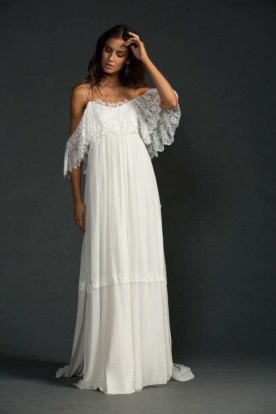 Boho Wedding Dress, Bohemian Lace Chiffon Wedding Dress, Off Shoulder Long Wedding Dress Bridal Dress