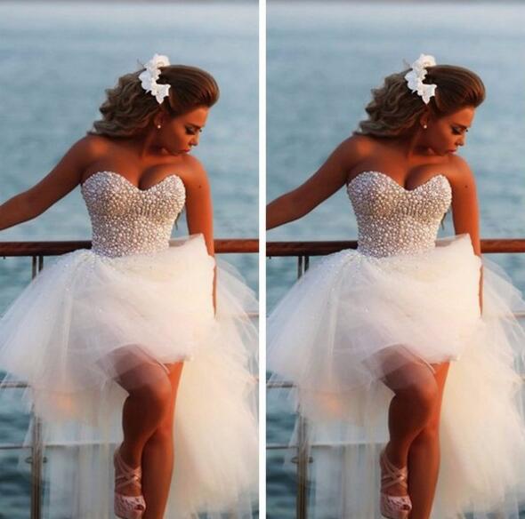 Beach Wedding Dress,High Low White Prom Dress, A Line Sweetheart Front Short Long Back Wedding Gowns, Bridal Wedding Dresses