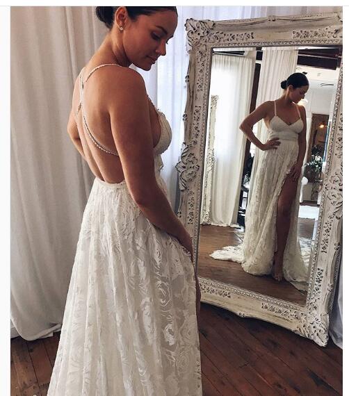 Lace Boho Wedding Dress, Beach Wedding Dress, Halter Lace Wedding Dress, Long Wedding Dresses Bridal Dress