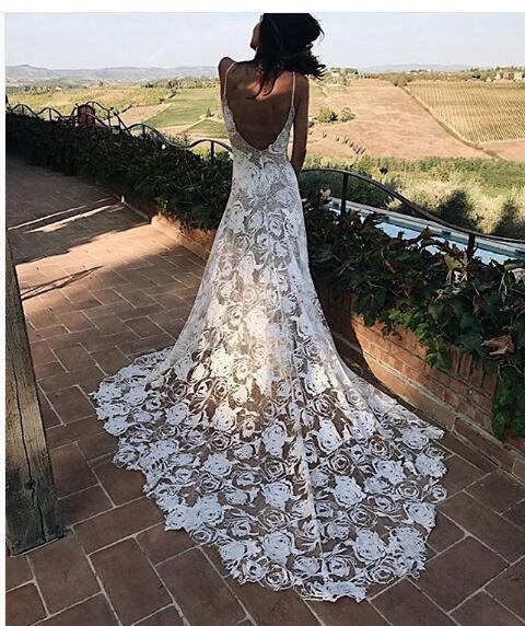 Lace Boho Wedding Dress, Beach Wedding Dress, Halter Backless Lace Wedding Dress, Long Wedding Dresses Bridal Dress