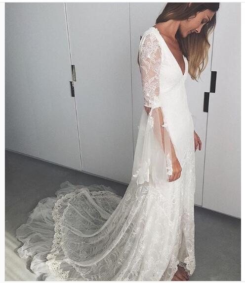 2019 V-neck Wedding Dress, Lace Wedding Dress, Long Wedding Dresses Bridal Dress