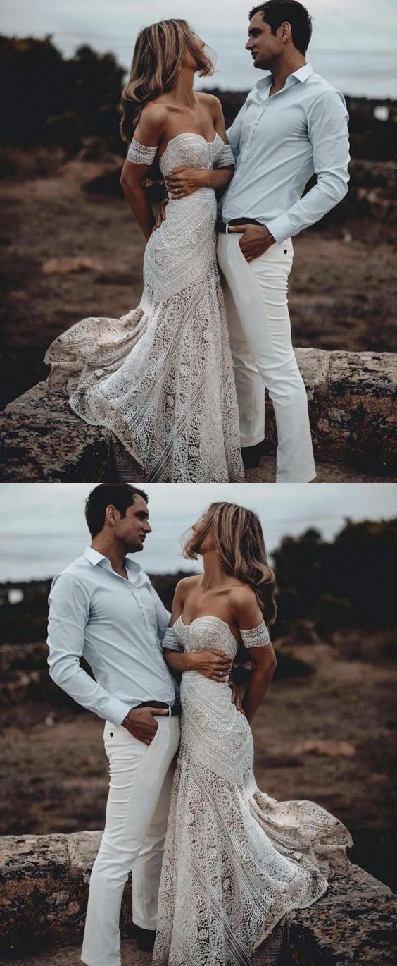 Beach Wedding Dress, Off the Shoulder Wedding Dress, Lace Bridal Dress