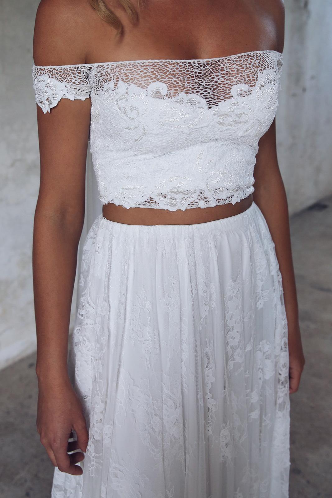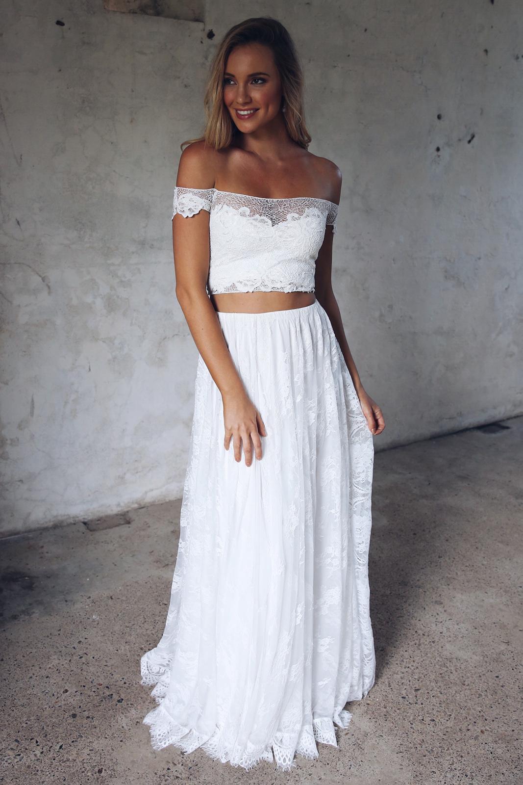 Two Pieces Beach Wedding Dress, Off the Shoulder Wedding Dress, Lace Bridal Dress