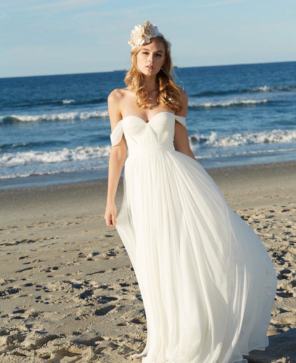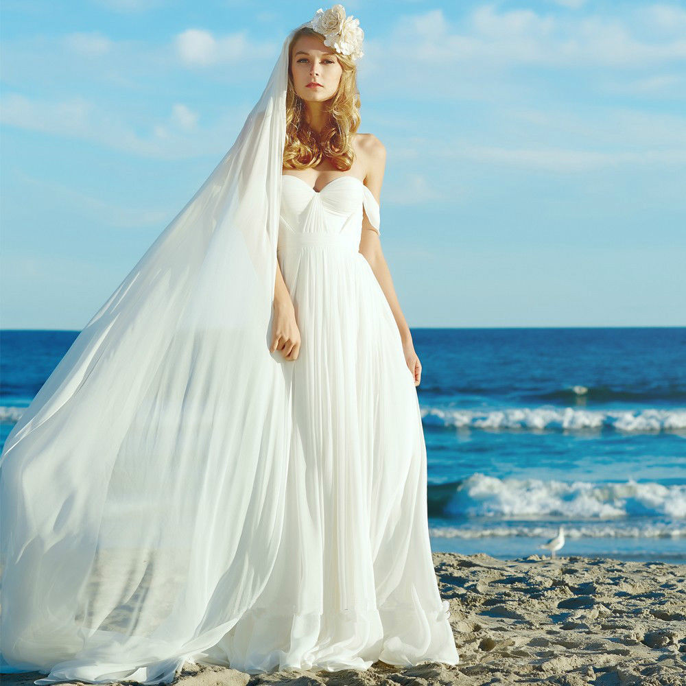 Beach Wedding Dress, Chiffon Long Wedding Dresses, Beach Wedding Gown, Off Shoulder Wedding Dress