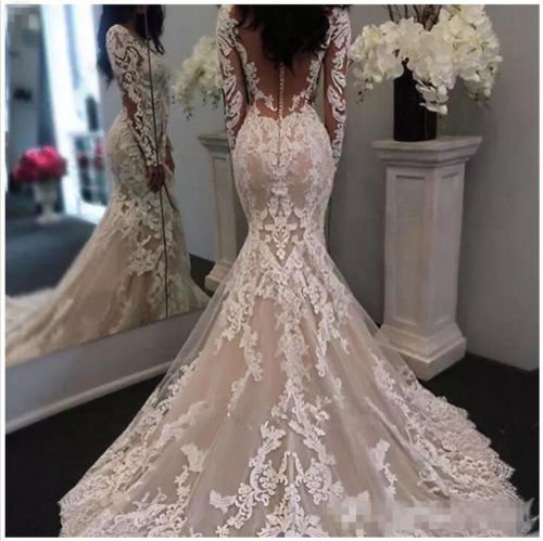 2019 New Lace Wedding Dresses, Appliqued Wedding Dresses Long Sleeve Mermaid Wedding Dress Bridal Gowns