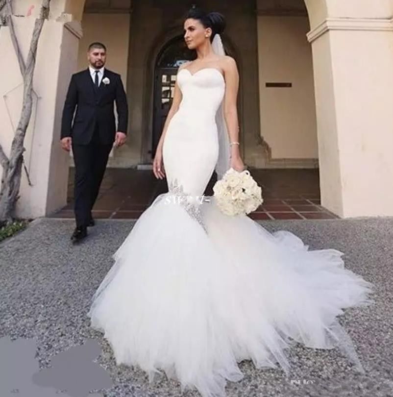 Mermaid Sweetheart Satin Tulle Bridal Gown Appliques Court Train Wedding Dresses