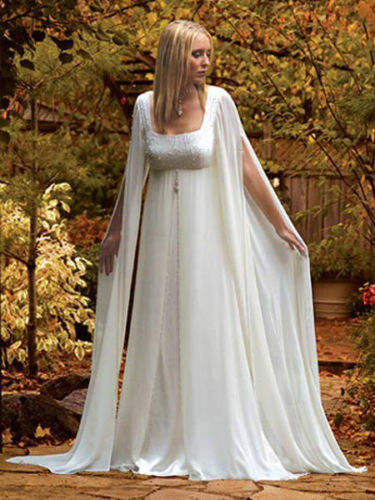 Stylish Mediaeval Long Sleeves Chiffon Wedding Dress Bridal Gown Greek Style