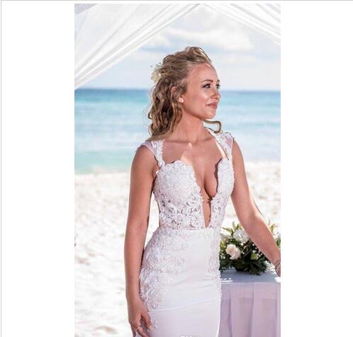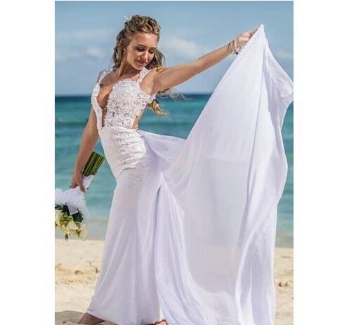 Summer Wedding Dresses,Beach Wedding Dresses,Sexy Deep V-Neck Backless Appliques Beach Wedding Dresses