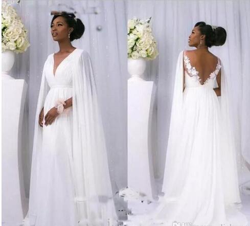 Summer Wedding Dresses,Beach Wedding Dresses,African V-Neck Backless Appliques Wedding Dresses With Wraps