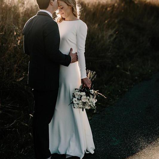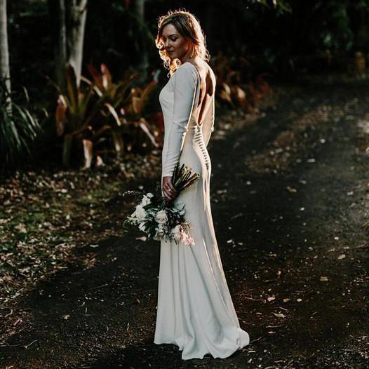 Chic Boho Mermaid Wedding Dresses Long Sleeves 2018 Backless Simple Bohemia Bridal Gowns Jewel Neck Satin Wedding Dresses