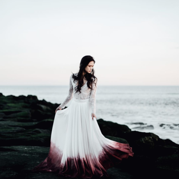 Beach Wedding Dresses Ombre A Line Chiffon Colorful Burgundy Bridal Gowns Sheer Long Sleeve Lace Bodice