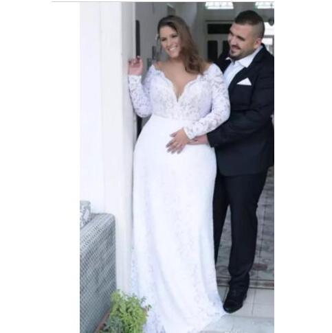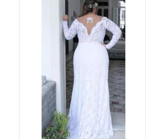 Plus Size Wedding Dresses long sleeves full lace bohemian beach bridal Gowns Cheap Vestido De Novia