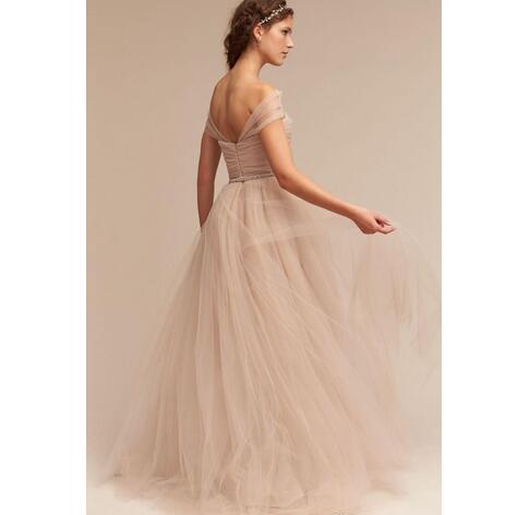 Wedding Dresses Off The Shoulder Delicate Sash Bridal Gowns Floor Length A Line Backless Wedding Gown