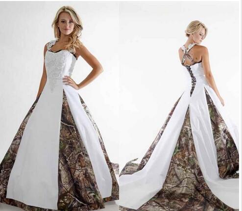 2019 New Camo Princess Wedding Dresses Spaghetti Appliques A Line Sweep Train Elegant Country Bridal Gowns Custom Made