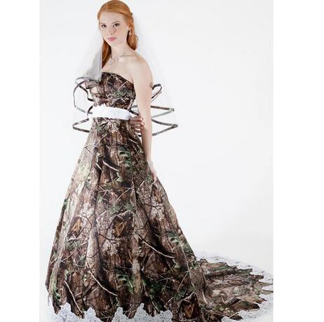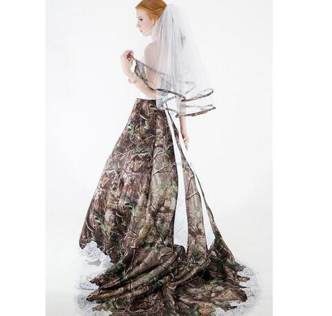 Modest Camo Wedding Dresses Strapless Appliques Backless Camouflage Country Wedding Gowns Brush Train Bridal Dresses