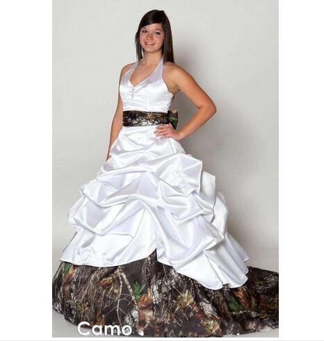 V Neck Halter Satin Camo Wedding Dresses 2016 Backless A Line Wedding Dresses Beach Bridal Gowns Plus Size