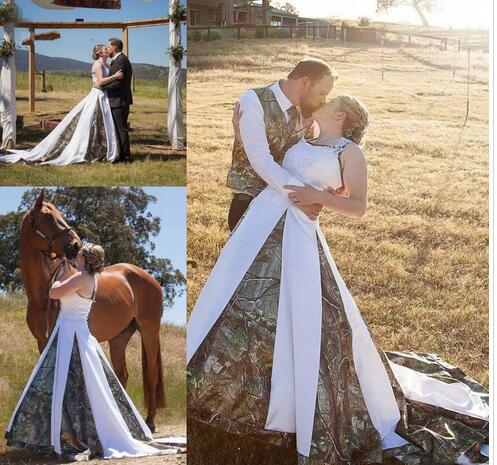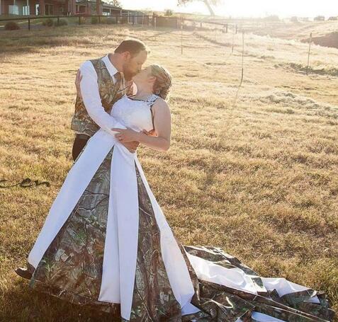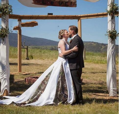 Vintage Camo Wedding Dresses With Lace Appliques Beads Chapel Train Satin Bridal Dress Custom Made Back Romantic Bridal Gowns