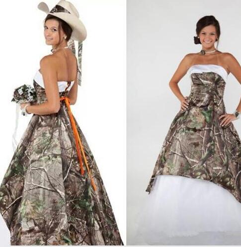 Fashion Strapless Camo Wedding Dresses Lace-up Vestidos de Novia Camouflage Ball Gown Forest Bridal Dress Latest Design Cheap Party Gown