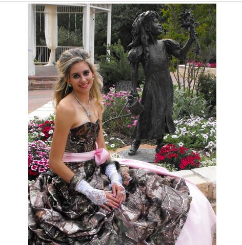 Hot Fashion Cowboy Country A Line Camo Wedding Dresses Pleats Sexy Sweetheart Lace-up Back Bridal Gown Pink Lining Bow Sash