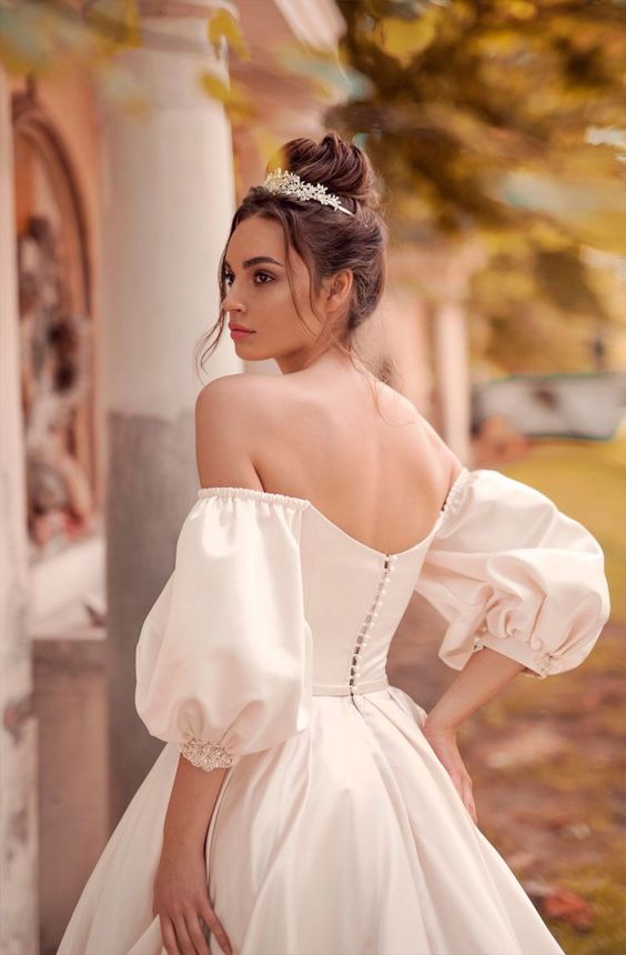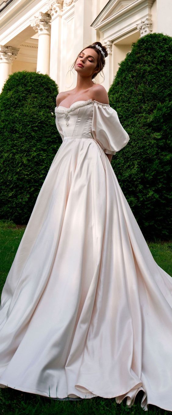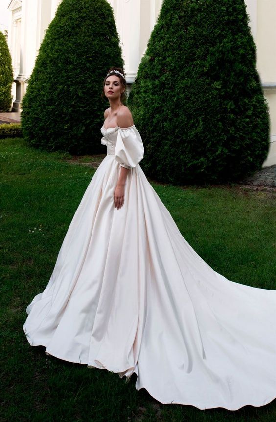Ball Gown Wedding Dresses Off the Shoulder Chapel Train Bridal Gowns