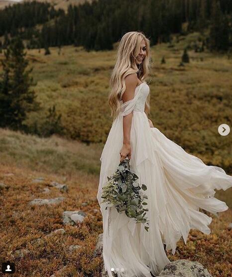 Beach Bohemian Wedding Dresses A Line Tulle Off the Shoulder Bridal Gowns