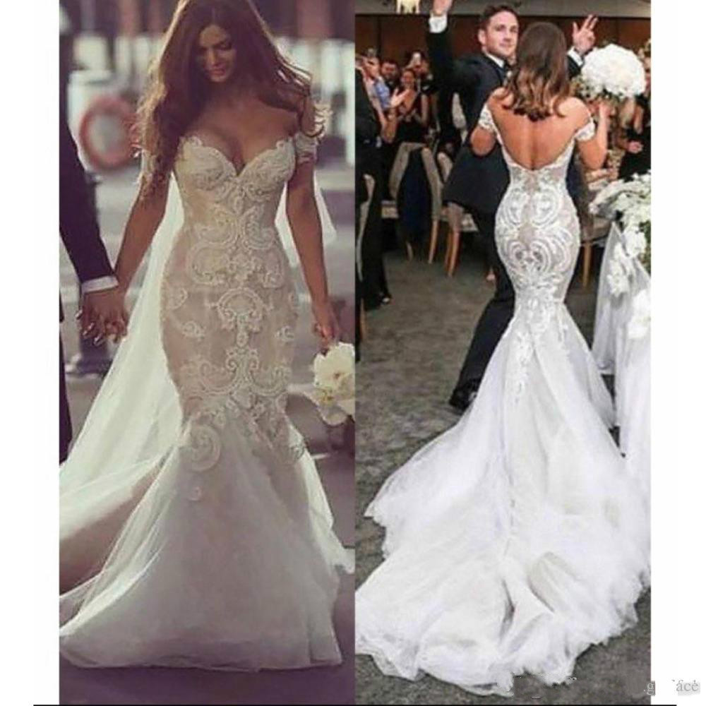 Sexy Lace Mermaid Wedding Dresses Appliques Sweetheart Off Shoulder Blackless Plus Size Fashion Bridal Gowns