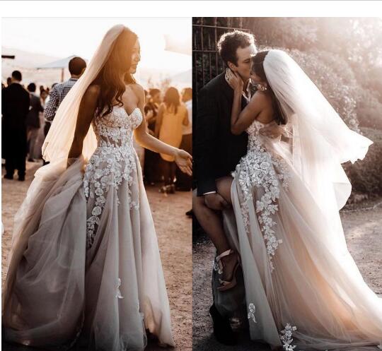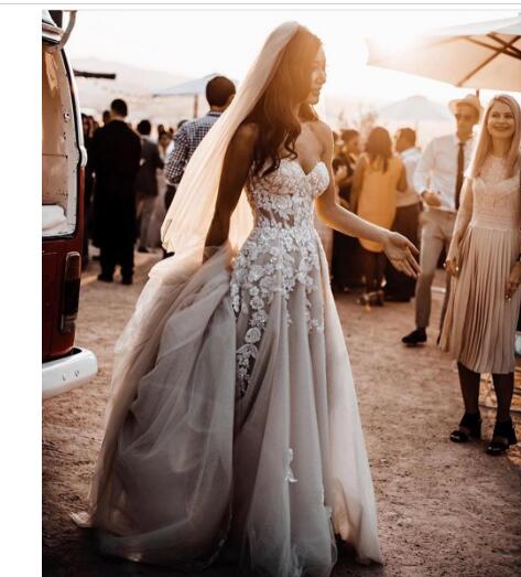 Country Style 3D Floral Lace Boho Wedding Dresses Plus Size 2020 Sweetheart Appliques Tulle Sexy Front Split Bohemian Beach Wedding Gowns