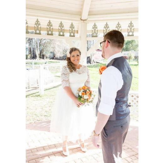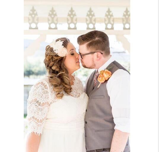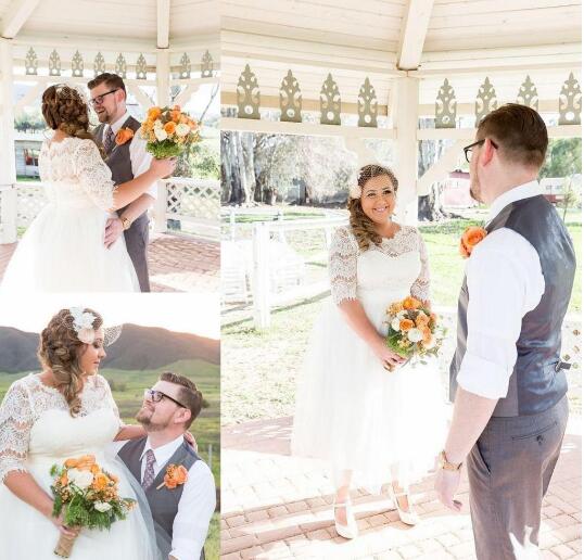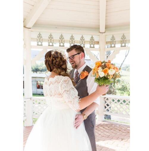 Latest Half Sleeve A-line Plus Size Wedding Dresses Tulle Satin Button up Back Tea-length Western Short Bridal Dresses Wedding Gowns