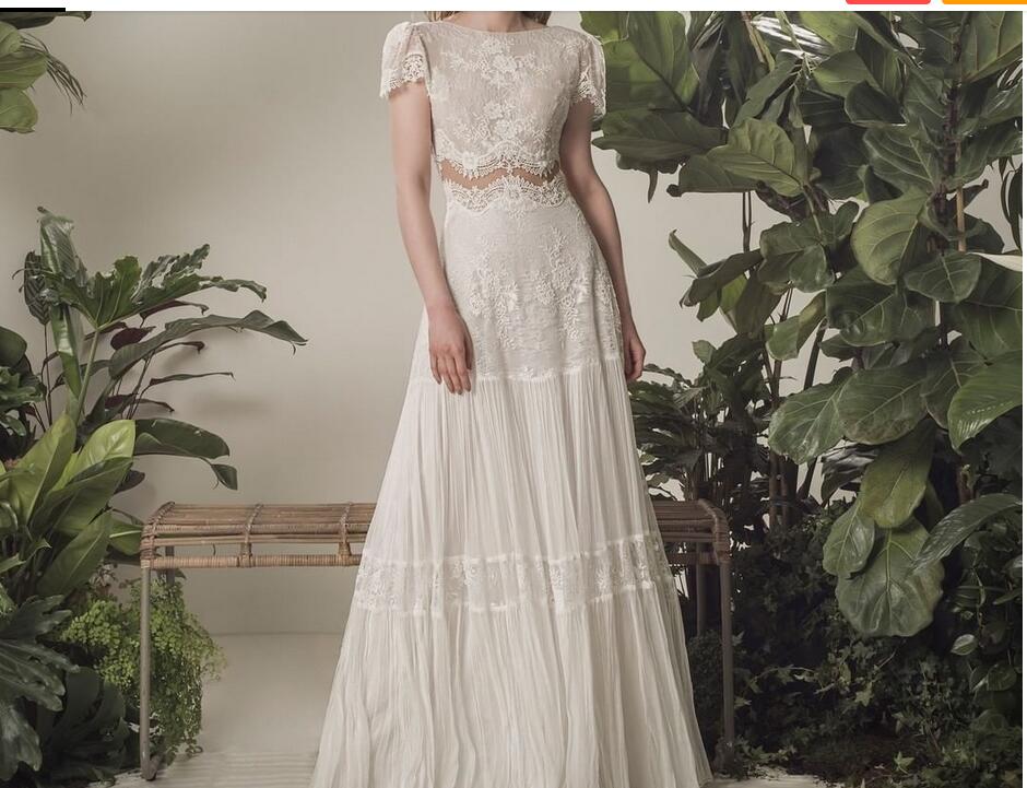 Bohemian Wedding Dress 2021 Two Pieces 2 Shorts Sleeve Floor Length Beach Bridal Gown Simple Chiffon For Women High Quality