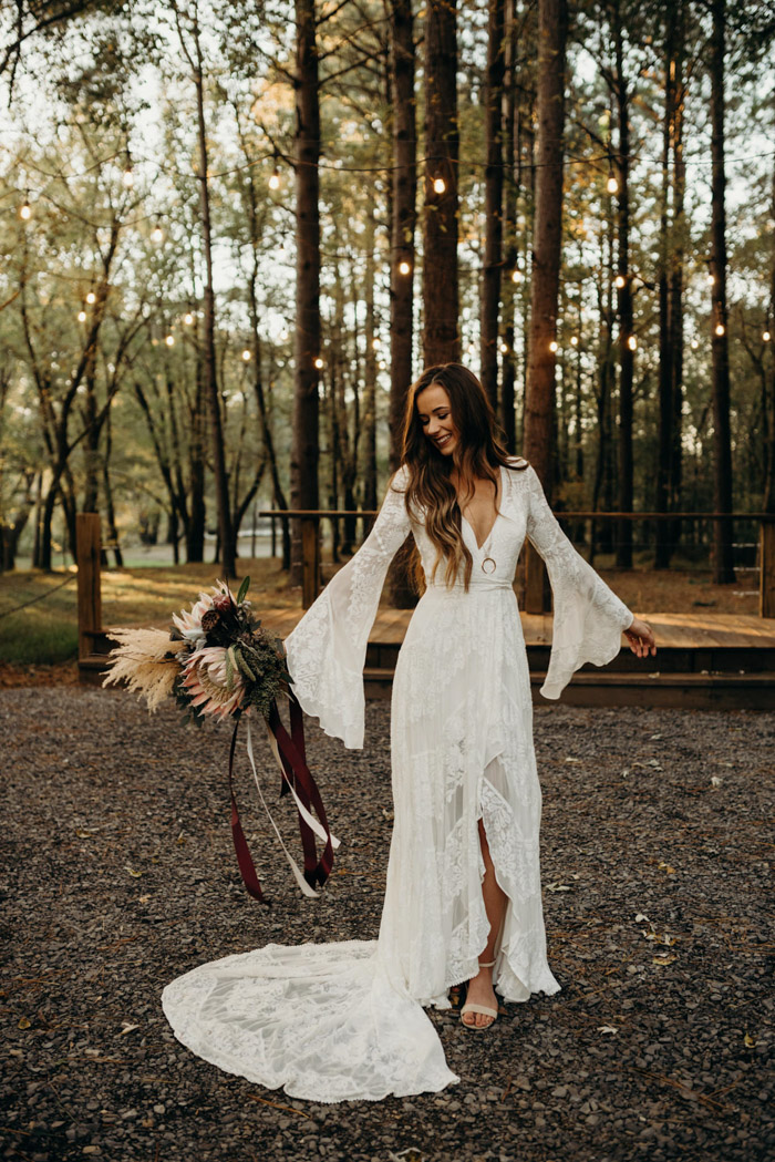 Bohemian Wedding Dress, Long Sleeve Wedding Dress, Lace Wedding Gown