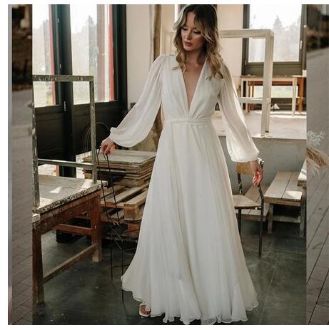 Elegant Wedding Dress V-Neck Long Sleeve Floor Length Bohemian Robe De mariee Charming For Women Brides Gown Elegant Civil
