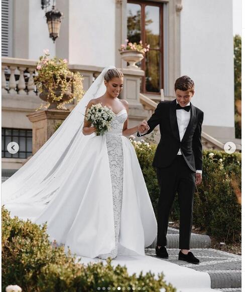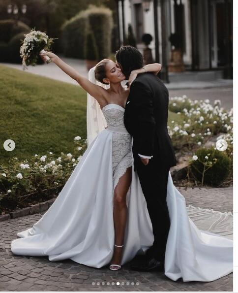 A-line Wedding Dress with Detachable Skirt Lace Wedding Dress Bridal Dress