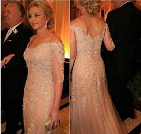 Mother Of The Bride Dresses Tulle Lace Sequined 3/4 Long Sleeves Evening Dress Deep V neck Appliques Groom Mother Formal Prom Gowns