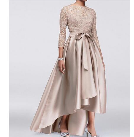 Chic Champagne A-line High Low Mother Of The Bride Dresses Sequined Lace Top Long Sleeves Dresses Evening Wear Cheap Wedding Guest Dress