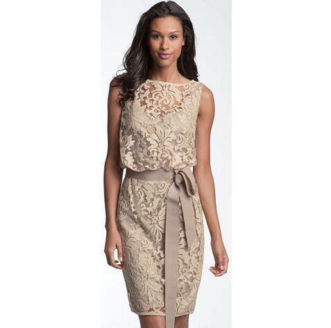 2018 Vintage Mother of the Bride Dresses Jewel Neck Illusion Full Lace Champagne With Sashes Short Plus Size Party Dress Wedding Guest Gowns