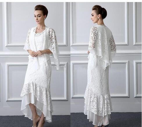 2018 Formal Lace Mother Of the Bride Dresses Long sleeves Sheath High Low Plus Size Mother Dress With Coat Evening Gowns Cheap Custom