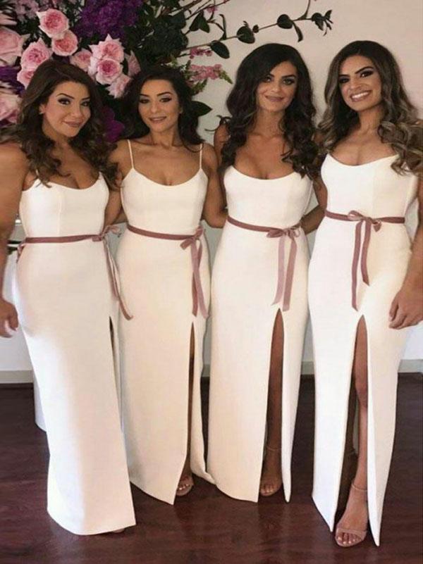 2018 Sheath Bridesmaid Dresses White Cheap Long Bridesmaid Dresses