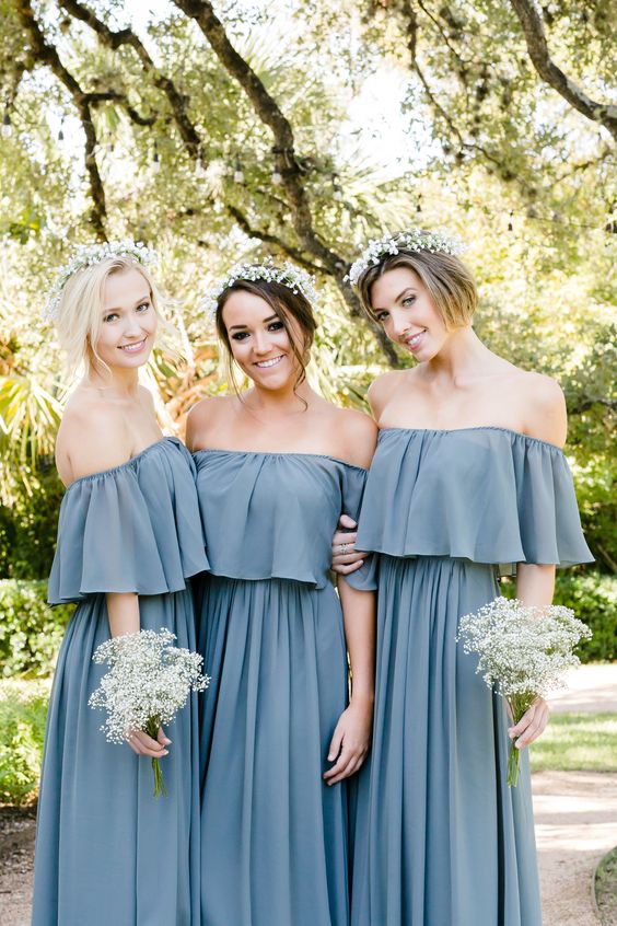 2018 Boho Off the Shoulder Bridesmaid Dress, Long Bridesmaid Dress, Chiffon Bridesmaid Dresses