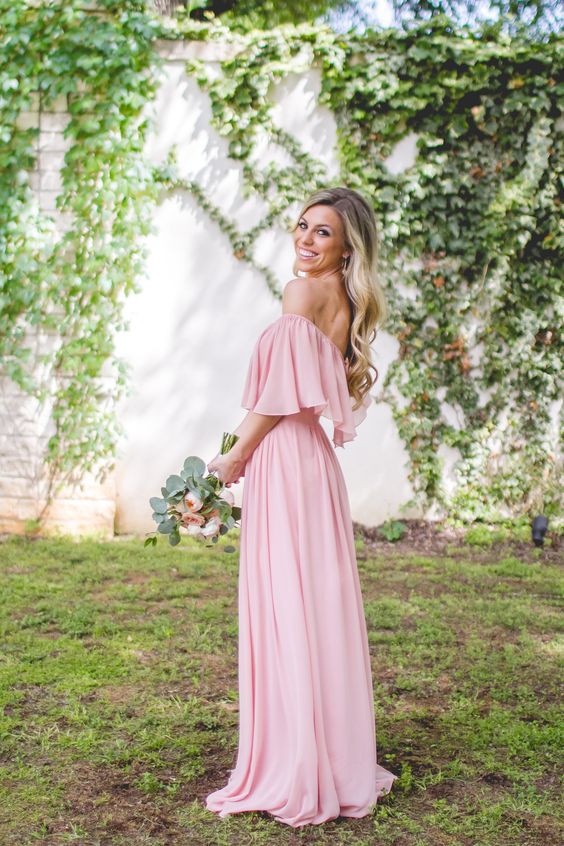 2018 Pink Off the Shoulder Bridesmaid Dress, Simple Chiffon Different Style Bridesmaid Dresses, Long Bridesmaid Dress