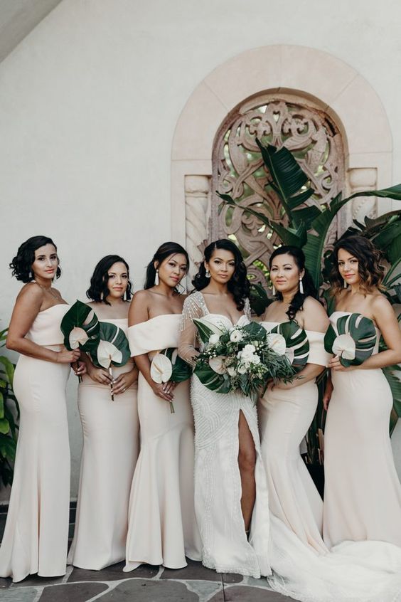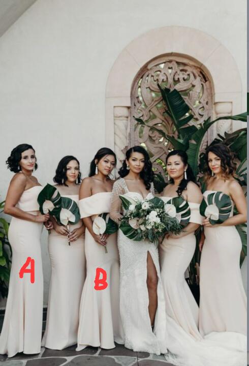 Unique 2018 Sheath White Bridesmaid Dress, Strapless Long Bridesmaid Dresses, Satin Bridesmaid Dress