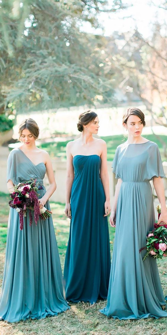 Convertible Bridesmaid Dress, Different Style Blue Shade Bridesmaid Dresses, Chiffon Long Bridesmaid Dress