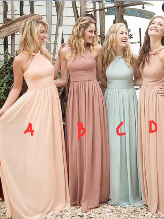 Halter Simple Bridesmaid Dress, Chiffon Bridesmaid Dress, Chiffon Long Bridesmaid Dress