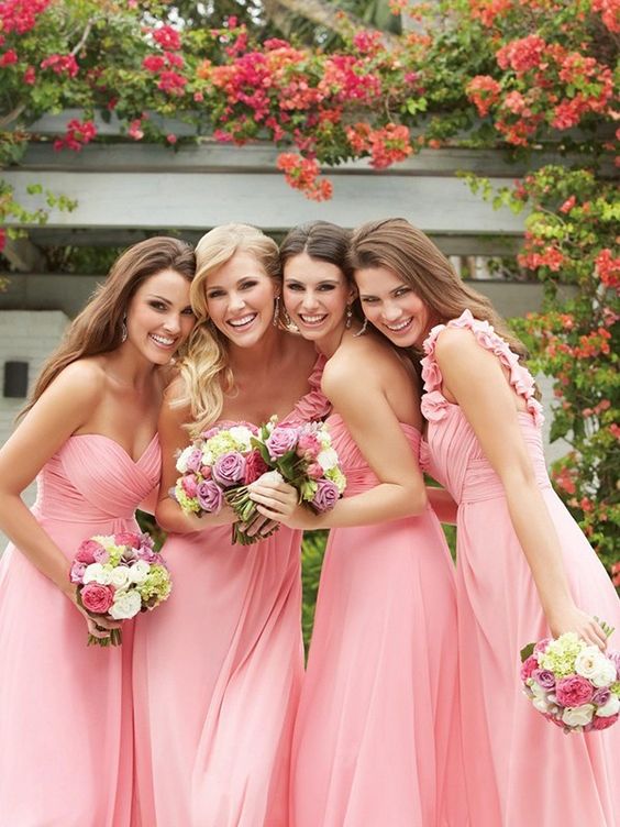 2018 Pink Bridesmaid Dresses, Sweetheart Chiffon Long Bridesmaid Dresses