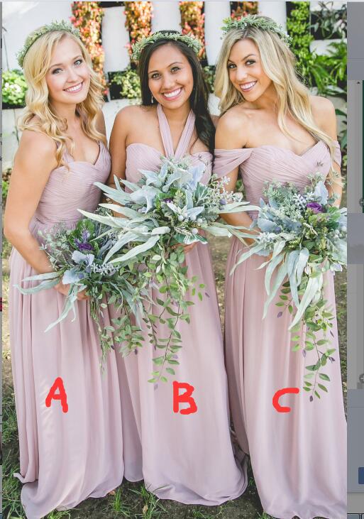 Mismatch Light Pink Bridesmaid Dress, Chiffon Elegant Bridesmaid Dresses, Long Bridesmaid Dress